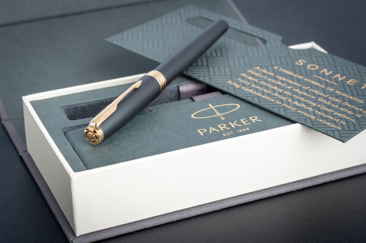 Перьевая ручка Parker Sonnet Matte Black GT от официального дилера Parker в Москве. Вы можете дополнительно заказать гравировку, которая подчеркнет Вашу оригинальность и придаст памятность статусному подарку. Все ручки Паркер поставляются в фирменном футляре.