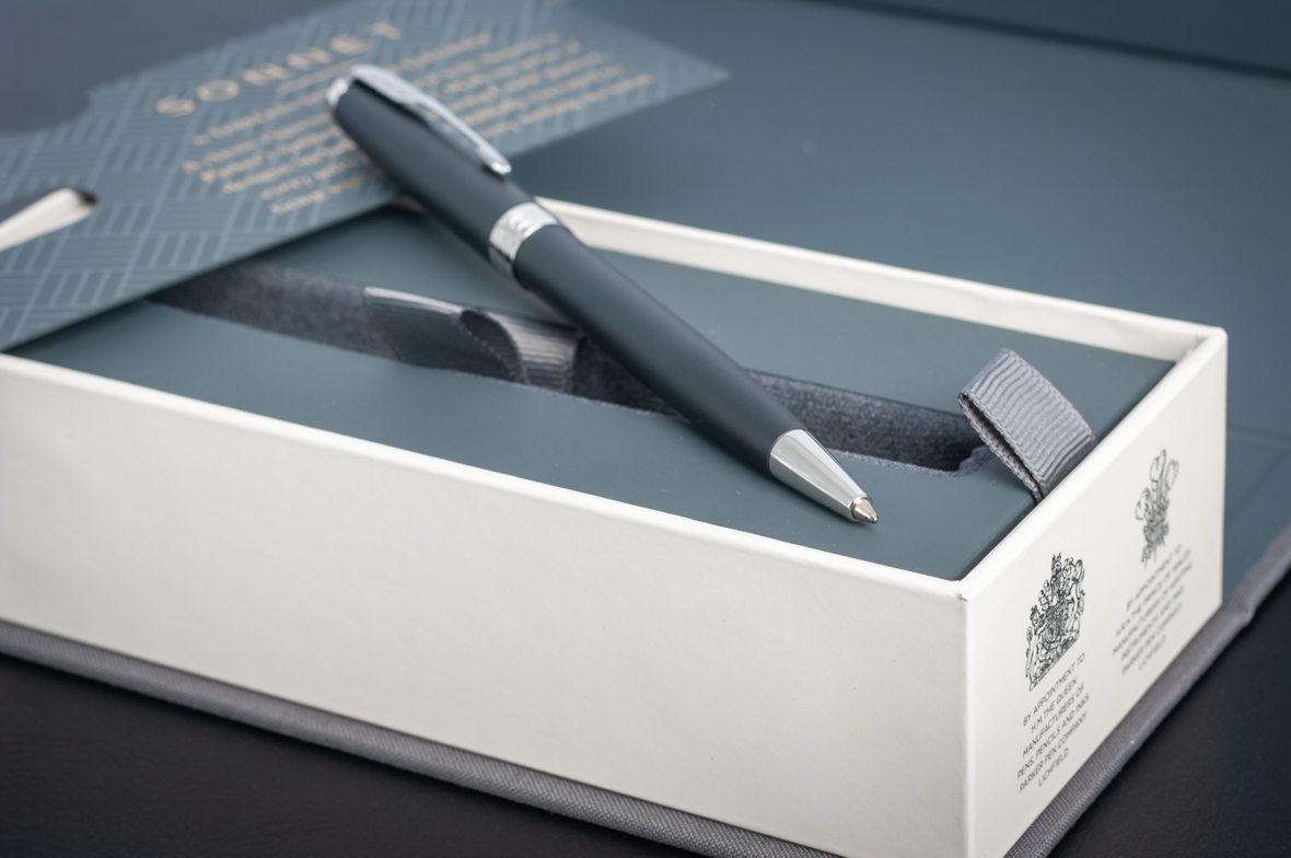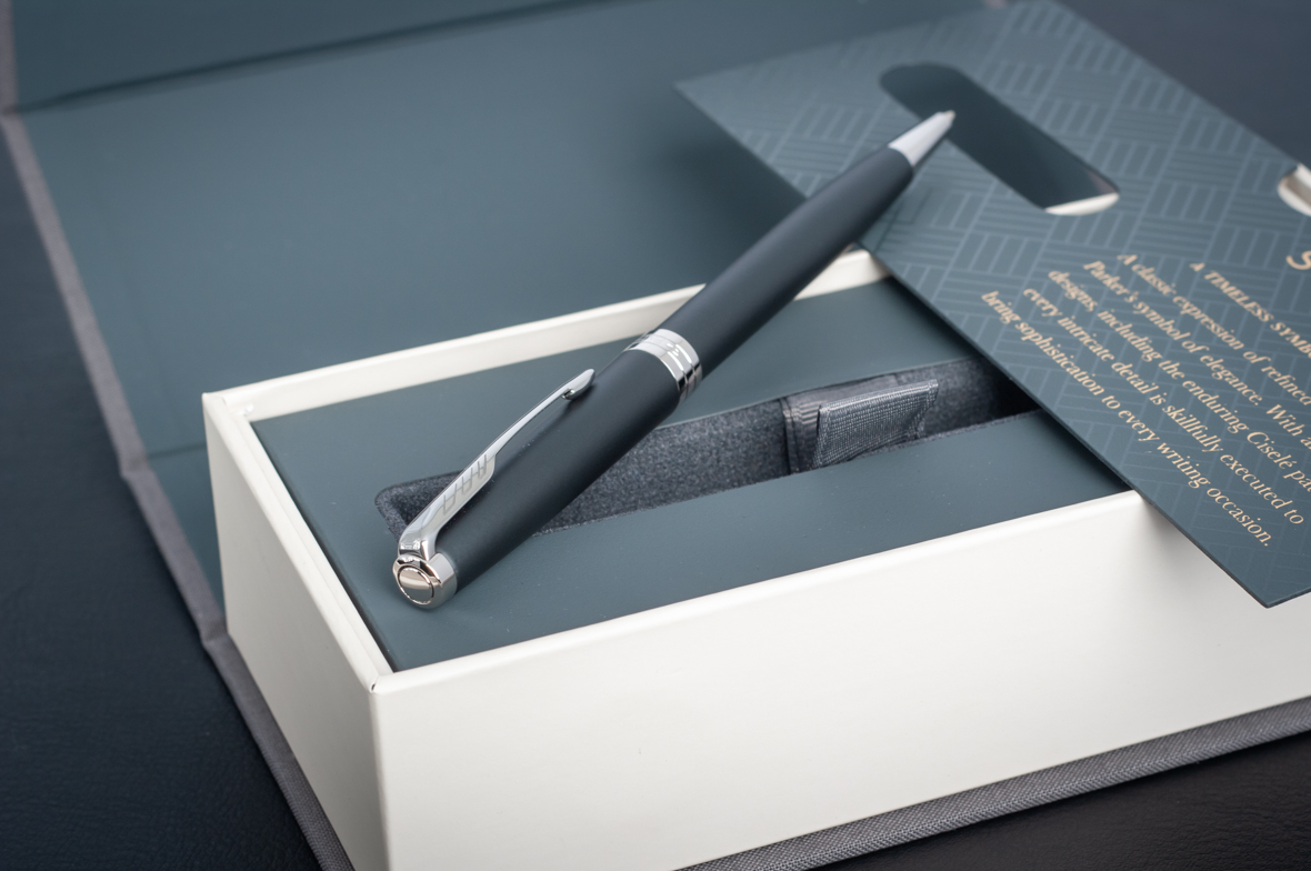 Шариковая ручка Parker Sonnet Matte Black CT от официального дилера Parker в Москве. Вы можете дополнительно заказать гравировку, которая подчеркнет Вашу оригинальность и придаст памятность статусному подарку. Все ручки Паркер поставляются в фирменном футляре.